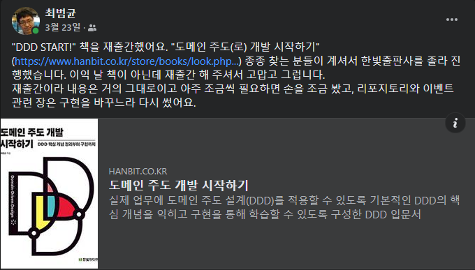 이 책의 재출간 소식을 처음 알게 된 것도, 최범균님의 페이스북 피드였다.